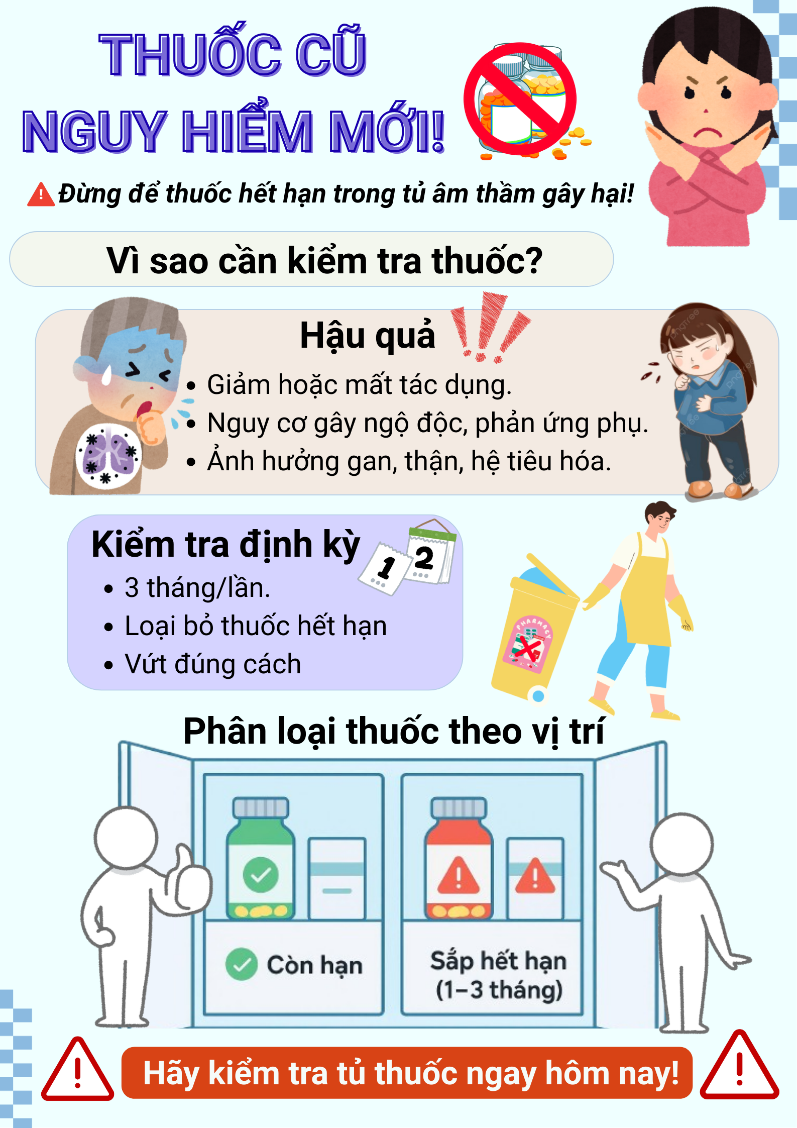 Bài thuyết trình “Quản lý thuốc hết hạn trong gia đình” đề cập đến thực trạng nhiều người vẫn giữ và sử dụng thuốc quá hạn do tâm lý tiếc tiền hoặc cho rằng thuốc còn nguyên thì vẫn dùng được. Ngoài ra, thói quen chưa bền vững như lười kiểm tra thuốc trong tủ cũng góp phần làm tăng rủi ro cho sức khỏe. Mặc dù phần lớn người dân đều nhận thức được tác hại của thuốc hết hạn, nhưng chưa có hành động cụ thể để quản lý. Bài thuyết trình hướng đến việc thu hẹp khoảng cách giữa nhận thức và hành động, góp phần nâng cao ý thức bảo quản và xử lý thuốc trong gia đình một cách an toàn và khoa học.